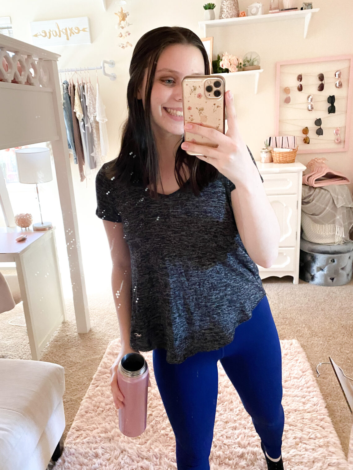 Today's workout outfit is a great look to wear to the gym, for running errands, or just around the house! The leggings are under $50 and are super comfortable + squat proof!